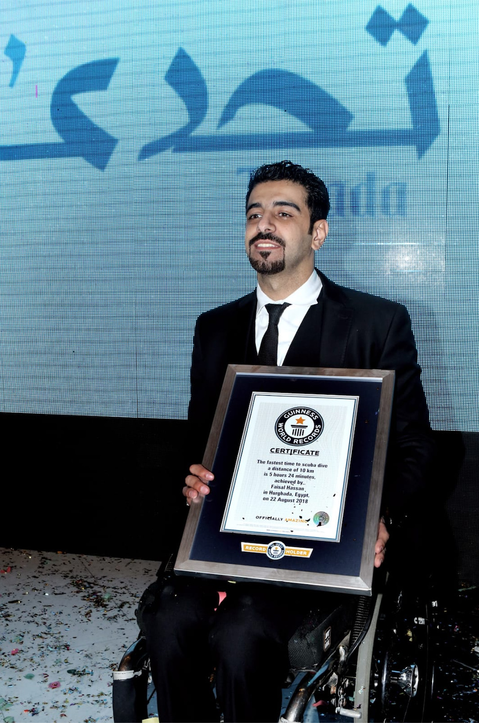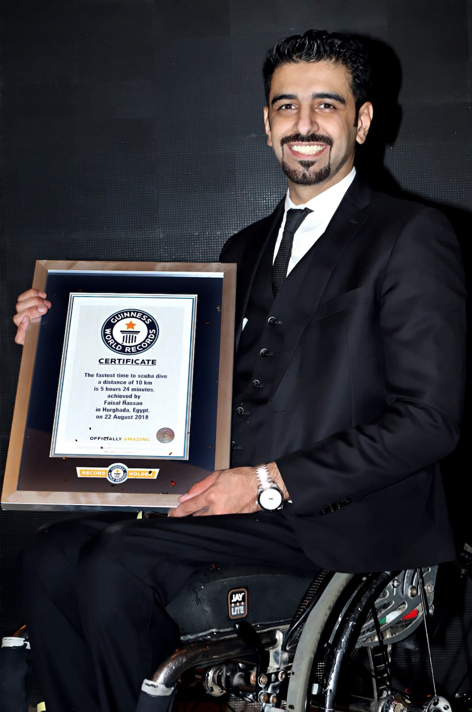 Faisal Al Mosawi is a disabled diver and athlete who has proven that his physical limitations can’t stop him from breaking a Guinness World Records title.